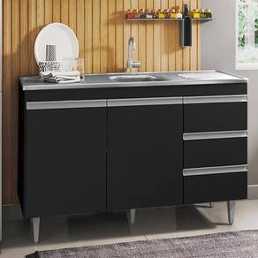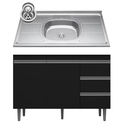 MDPSe você está procurando um balcão compacto, prático e funcional para a sua cozinha o Balcão de Cozinha Com Pia Inox 100cm 3 Gavetas Andréia Preto, da AJL Móveis é perfeito!