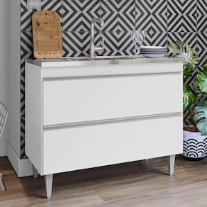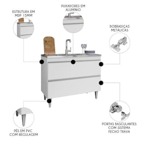 Renove sua casa com o Balcão de Cozinha Com Pia Inox 100cm Julia Z34 Branco, da Mpozenato a solução ideal para quem busca otimizar o espaço e agregar praticidade ao ambiente.