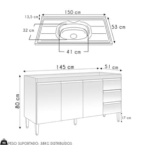 Conteúdo da Embalagem: 1 Balcão, 1 Pia.