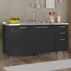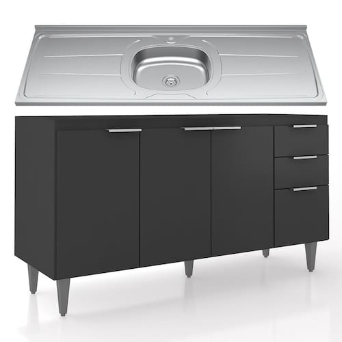 Balcão de Cozinha Com Pia Inox 150cm Pérola Z34 Preto - Mpozenato