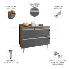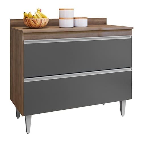 O Balcão de Cozinha Com Tampo 100cm Julia Z34 Freijó/Grafite, da Mpozenato é uma escolha excelente para quem busca otimizar o espaço com estilo e funcionalidade.