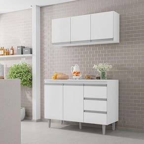 Balcão de Cozinha com Tampo 120 cm e Armário Aéreo Andréia Branco Brilho - AJL