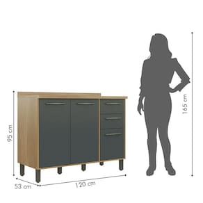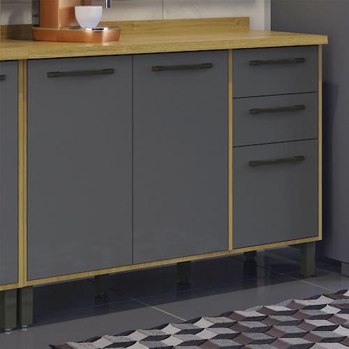 Balcão de Cozinha com Tampo 3 Portas 2 Gavetas 120 cm Áustria Valdemóveis - Grafite