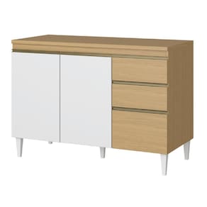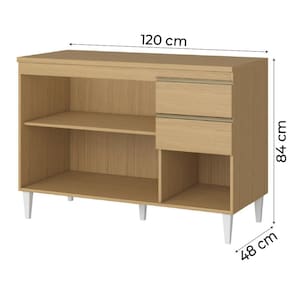 O Balcão de Cozinha Clara possui design versátil e multifuncional, podendo ser utilizado de diversas maneiras. Possui 3 portas com prateleiras bem divididas, excelentes para acomodar copos, xicaras, pratos e demais utensílios domésticos, 2 gavetas e pés em material resistente que não agridem o piso. Ideal para deixar seu ambiente ainda mais moderno e organizado! MEDIDAS: [A]= 84 cm [L]= 120 cm [P]= 48 cm MODELO: Balcão 3 Portas 2 Gavetas Clara MARCA: Aramóveis COR: Atacama/ Off White MATERIAL DA ESTRUTURA: MDP ACABAMENTO: PINTURA UV PORTAS: 3 TIPO DE PORTA: Bater DOBRADIÇAS: Metálicas PRATELEIRAS: 3 PESO SUPORTADO PRATELEIRAS: 5kg MATERIAL DOS PUXADORES: Plástico PÉS: 5 MATERIAL DOS PÉS: Plástico SUPORTA ATÉ: 41kg PESO: 36,7kg GARANTIA: 3 meses