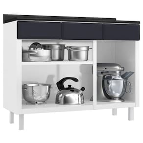 Balcão de Cozinha de Aço Triplo Telasul Diamante C/ Tampo Bco/Pto