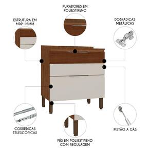 A Cozinha é o coração da casa, e um ambiente acolhedor e funcional torna os momentos em família ainda mais agradáveis. O Balcão de Cozinha Com Tampo 80cm Dora Z06 Nogueira/Off White, da Mpozenato é a escolha perfeita para renovar esse espaço tão especial. Esse Balcão conta com uma porta basculante equipada com dobradiças metálicas, puxadores em poliestireno e pistão a gás, que garantem uma abertura controlada e um fechamento sem impactos. O gavetão possui corrediças telescópicas, proporcionando suavidade no uso e acesso total ao conteúdo interno, além de amplo espaço para acomodar utensílios, como panelas, louças e muito mais, mantendo tudo sempre organizado de forma eficiente. O Balcão de Cozinha é fabricado em MDP 15mm e apresenta acabamento em pintura fosca texturizada na estrutura e acetinada nas portas, com secagem realizada por luzes UV, que conferem um toque sofisticado e um visual moderno. O tampo serve como apoio para eletrodomésticos ou no preparo de alimentos, ele acompanha rodatampo, que é um excelente acabamento entre o balcão e a parede. Os pés, também em poliestireno, são reguláveis, permitindo ajustar pequenos desníveis de piso e manter a estabilidade do produto. Não perca tempo, adicione ao seu carrinho agora mesmo! Especificações Dimensões dos Produtos (L x A x P)Balcão: 80 cm x 84,5 cm x 51,8 cm. Tampo: 80 cm x 9,5 cm x 53 cm. Peso: 34,2 Kg. **ACOMPANHA TAMPO 80CM. Características do ProdutoMaterial da Estrutura: MDP 15mm. Material do Fundo: HDF 3mm. Peso Suportado: 43 Kg distribuídos. Acompanha Pia: Não. Acompanha Tampo: Sim. Acabamento: Texturizado/Pintura UV. Escala de Brilho: Fosco/Acetinado. Possui Portas: Sim. Quantidade de Portas: 1 Porta. Tipo de Porta: Basculante. Possui Pistão a Gás: Sim. Material das Dobradiças: Metálicas. Possui Gavetas: Sim. Quantidade de Gavetas: 1 Gaveta. Material das Corrediças: Telescópicas. Possui Puxador: Sim. Material do Puxador: Poliestireno. Possui Prateleiras: Não. Possui Pés: Sim. Quantidade de Pés: 4 Pés. Material dos Pés: Poliestireno. Altura dos Pés: 15cm com regulagem. Diferenciais:- Design moderno. - Porta basculante. - Pistão a gás. - Gaveta com corrediças telescópicas. - Pés com regulagem de 15 à 17cm. Sistema de Montagem: Cavilhas/Parafusos. Manual de Montagem: Sim. Complexidade da Montagem: Média. Volumes: 3 Volumes. Conteúdo da Embalagem: 1 Balcão, 1 Tampo. do Fabricante: 90 dias contra defeito de fabricação. Montagem: Recomendamos que seja feita por um . Recomendação de Limpeza: Utilize pano úmido. Observações importantes:- Produto para uso residencial em ambiente interno, não devendo ficar exposto diretamente ao sol, calor e umidades excessivas.- Pode haver alguma diferença de tonalidade entre a imagem e o produto real, por conta do tratamento de imagens e a calibração de cores do seu monitor.- As imagens são meramente ilustrativas, não acompanham objetos de decoração e eletrônicos.- Confira o estado da embalagem, não devendo assinar o comprovante em caso de danos.- Não asseguramos, no ato da , por subir escadas/elevadores, pelo transporte por guincho em apartamentos ou montagem, desmontagem e instalações. Eventuais despesas são por conta do comprador.- Confira as dimensões do produto e certifique-se de que passará normalmente por supostos elevadores, portas, escadas e/ou corredores de sua residência.