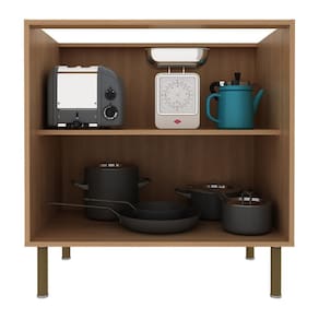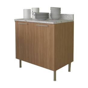 Facilidade e organização: Possui 2 portas com dobradiças com amortecedor Slow Motion e puxadores em alumínio, proporcionando um manuseio suave, prático e silencioso. O amplo espaço interno permite acomodar utensílios de cozinha com eficiência, já que sua prateleira interna suporta até 5kg. O tampo robusto (pintura UV) de 25mm suporta até 20kg e pode servir de apoio no preparo de refeições.
