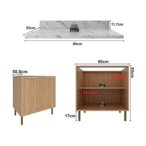 Especificações Técnicas: Altura: 96,7cm | Largura: 80cm | Profundidade: 52cm Material: MDP Compatível com Pia: Não Tampo Incluso: Sim Espessura do Tampo: 25mm Quantidade de Portas: 2