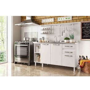 O Balcão Star New da Telasul é um módulo espaçoso, resistente e muito prático para a cozinha. Conta com três portas, duas amplas gavetas e excelente espaço interno disponível para armazenar panelas e utensílios de maneira organizada em sua cozinha. Aqui, beleza e qualidade estão alinhadas para proporcionar funcionalidade: as gavetas são equipadas com corrediças metálicas, que abrem e fecham facilmente; sendo a parte interna da gaveta produzida integralmente em plástico rígido e durável, que comporta até 5kg de peso. Os puxadores e apliques resinados na cor Ônix são cheios de estilo e trazem mais brilho ao módulo. O móvel dispõe ainda de nichos especiais para decoração e organização. Fabricado em aço, este balcão para pia recebe pintura eletrostática e anticorrosiva, com acabamento brilhoso Suporta Granito: Sim Acabamento da Prateleira: Pintura Escala de Brilho da Prateleira: Brilhante Acabamento da Gaveta: Polipropileno Escala de Brilho da Gaveta: Semi-Brilho Material do Puxador da Gaveta: Poliestireno Acabamento da Porta: Pintura Escala de Brilho da Porta: Brilhante Material do Puxador da Porta: Poliestireno Acabamento: Pintura Acabamento dos Pés: Polipropileno Acompanha Tampo: Não Altura dos Pés: 14 cm Ambiente Principal: Cozinha Balcão Acompanha Pia: Não Cesto para Frutas: Não Complexidade da Montagem: Média: pode ser montado por mais de uma pessoa e/ou necessite de maior conhecimento para montagem Cor: Branco Cor do Produto: Branco Cor Flex: Não Cor Interna: Branco Escala de Brilho: Brilhante Espessura do Material da Estrutura: 0,4 mm Gaveta com Chave: Não Itens Inclusos: 1 balcão + manual de montagem Linha ou Coleção: Star New Manual de Montagem e Instalação: https://product-hub-prd.madeiramadeira.com.br/904908/documents/fe80024a-9406-4ae3-ba09-14154c3139adalcaotriplo1500mmcnicho2gv.pdf Material da Dobradiça/Corrediça da Porta: Metálica Material da Gaveta: Polipropileno Material da Porta: Aço Material da Prateleira: Aço Material dos Pés: Polipropileno modular: Sim Montagem Flex: Não Necessita Montagem: Sim Origem do Produto: Nacional Pés Reguláveis: Sim Peso: 24,1 kg Peso Máximo por Gaveta: 3 kg Peso Máximo por Prateleira: 15 kg Possui Pés: 06 Possui Portas: Sim Possui recorte para Cooktop: Não Recomendações de Uso, Manutenção e Limpeza: A limpeza deve ser feita com pano macio e seco ou levemente umedecido com água e sabão neutro. Não devem ser utilizados produtos como palha de aço ou qualquer material que arranhe a superfície de seu produto. Evite guardar substâncias como sal, vinagre, limão, cebola, etc. em contato direto com o móvel. Recomenda-se forrar as prateleiras com papel ou plástico liso nas áreas de maior atrito. Sapatas Niveladoras: Não Sistema de Montagem: Porcas e parafusos Suporta Até (kg): 45 kg Tipo de Corrediça da Gaveta: Simples Tipo de Dobradiça/Corrediça da Porta: 35 mm Tipo de Porta: Bater Tipo de Puxador da Gaveta: Externo Tipo de Puxador da Porta: Externo