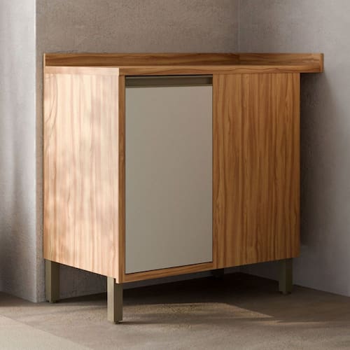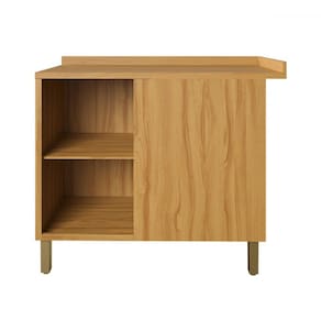 O(a) Balcão de Cozinha de Canto Tempranillo 1 Porta 100% Mdf Amêndoa/Off White - Rio Doce  é produzido em 100% MDF na escala de brilho Semi-Brilho, e possui um grau de dificuldade de montagem: Fácil.