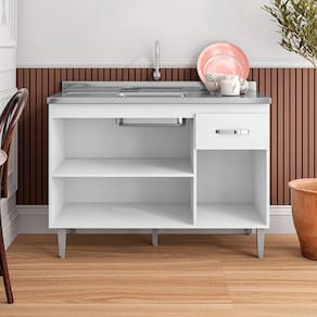 Balcão de Cozinha Elsa para Pia de 120cm Branco - Montanaris Decor