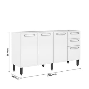 O Balcão de Pia Bertolini Evidence, combina design elegante e qualidade excepcional. Conta com 3 portas, 4 gavetas e 1 prateleira, oferecendo amplo de armazenamento, mantendo sua cozinha organizada e seus utensílios seguros e ao alcance das mãos. Sua estrutura em AÇO de alta qualidade, dobradiças metálicas, corrediças telescópicas em aço e Pintura Eletroestática a Pó, garantem alta durabilidade e resistência ao móvel, além disso, conta com pés com regulagem de altura, maior comodidade. Aproveite a qualidade Bertolini!
