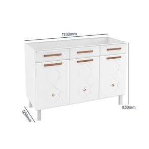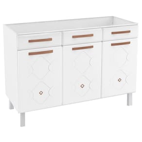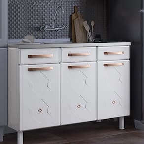O Balcão triplo Mirage New conta com um amplo espaço disponível para armazenar panelas e utensílios de maneira organizada em sua cozinha. Ele possui três gavetas equipadas com corrediças metálicas, que abrem e fecham facilmente. A parte interna é produzida em polipropileno, o sejam um plástico rígido e durável, que comporta até 5kg de peso. Os puxadores e apliques resinados na Cr Cobre Fosco dão um ar sofisticado para a peça. Fabricado em aço, este balcão recebe pintura eletrostática e anticorrosiva, com acabamento brilhoso. O tratamento recebido na pintura garante resistência e durabilidade ao móvel. Leve mais beleza e funcionalidade para a sua casa! Suporta Granito: Não Acabamento da Prateleira: Pintura Escala de Brilho da Prateleira: Brilhante Acabamento da Gaveta: Polipropileno Escala de Brilho da Gaveta: Semi-Fosco Material do Puxador da Gaveta: Plástico Acabamento da Porta: Pintura Escala de Brilho da Porta: Brilhante Material do Puxador da Porta: Plástico Acabamento: Pintura Acabamento dos Pés: Polipropileno Acompanha Tampo: Não Altura: 83 cm Altura dos Pés: 13 cm Ambiente Principal: Cozinha Balcão Acompanha Pia: Não calculo: unidade Complexidade da Montagem: Baixa: pode ser montado por uma pessoa sozinha Cr: Branco Cr do Pés: Cinza Cr do Produto: Branco Cr Flex: Não Cr Interna: Branco Escala de Brilho: Brilhante Estilo: Clássico Gaveta com Chave: Não Itens Inclusos: 1 Balcão, Manual de Montagem e Kit Ferragens Largura: 120 cm Linha ou Coleção: Mirage New Manual de Montagem e Instalação: https://cdn2.madeiramadeira.com.br/atributo/telasul/724311-m4057pt-balcao-triplo-2g-frente-falsa.pdf Material da Gaveta: Polipropileno Material da Porta: Aço Material da Prateleira: Aço Material dos Pés: Polipropileno Material Principal: Aço Montagem Flex: Não Necessita Montagem: Sim Origem do Produto: Nacional Pés Reguláveis: Sim Peso: 21,62 kg Peso Máximo por Gaveta: 3 kg Peso Máximo por Prateleira: 15 kg Possui Gavetas: 02 Possui Pés: 04 Possui Portas: 03 Possui Prateleiras: 01 Possui recorte para Cooktop: Não Possui Rodízio: Não Profundidade: 50 cm Recomendações de Uso, Manutenção e Limpeza: Para limpeza, utilizar sempre um pano macio umedecido em água e sabão neutro, nunca usar álcool ou produtos abrasivos e principalmente esponjas de aço ou qualquer material que arranhe a superfície;Evitar guardar substâncias ácidas (sal, vinagre, limão, cebola,...) em contato direto com o móvel. Sapatas Niveladoras: Não Sistema de Montagem: Parafusos status-cadastro: Aprovado Suporta Até (kg): 60 kg Tamanho: Tipo de Corrediça da Gaveta: Metálica Simples Tipo de Dobradiça/Corrediça da Porta: Metálica Tipo de Porta: Bater Tipo de Puxador da Gaveta: Externo Tipo de Puxador da Porta: Externo