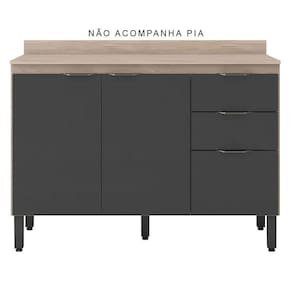 Balcão de Cozinha Firenze com Tampo 120 cm Avena Grafito - Demóbile