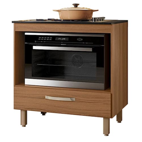 ESPECIFICAÇÕES: Estrutura em MDP Pintura UV 1 Gaveta Corrediças telescópicas Espaço para forno ou micro-ondas Puxadores em ABS Tampo em MDP para cooktop Tampo já cortado, ideal para fogão de 4 e 5 bocas Não acompanha fogão cooktop Pés em ABS