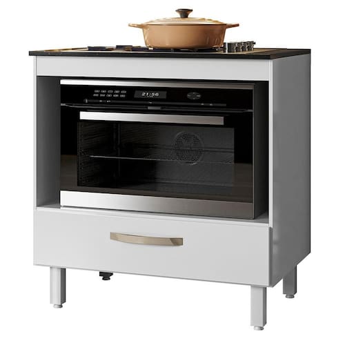 ESPECIFICAÇÕES: Estrutura em MDP Pintura UV 1 Gaveta Corrediças telescópicas Espaço para forno ou micro-ondas Puxadores em ABS Tampo em MDP para cooktop Tampo já cortado, ideal para fogão de 4 e 5 bocas Não acompanha fogão cooktop Pés em ABS