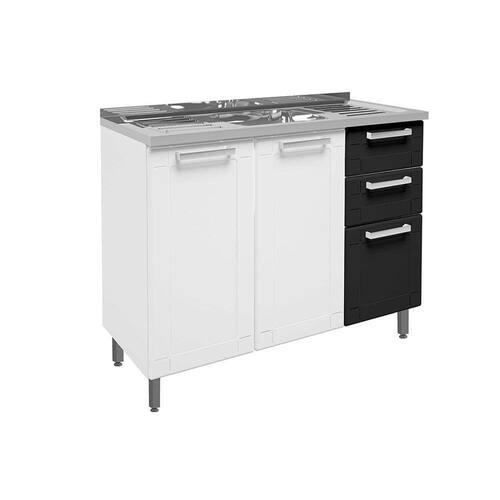 Balcão de Cozinha Gabinete c/Pia Múltipla 6015 3 Portas e 2 Gavetas 105cm Branco/Preto - Bertolini