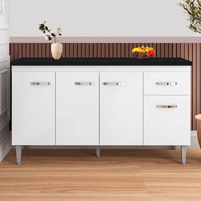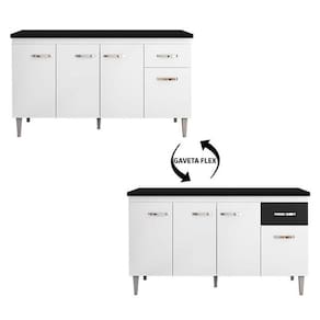 Balcão de Cozinha Gabriela Branco Flex com Tampo 150 cm Preto Fosco - AJL