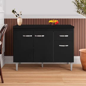 Balcão de Cozinha Gabriela com Tampo 120 cm Preto Fosco - AJL