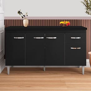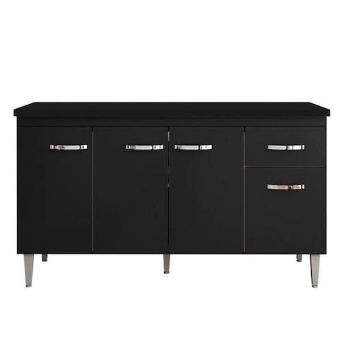 Balcão de Cozinha Gabriela com Tampo 150 cm Preto Fosco - AJL
