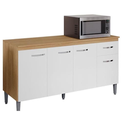 Balcão de Cozinha Gabriela com Tampo 150cm Amêndoa Branco - AJL