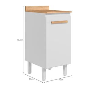 Balcão De Cozinha Intenza 40cm Branco Com Tampo Mdp - Nicioli Branco Balcão de Cozinha Intenza 40cm com Tampo MDP - Nicioli Otimize o espaço da sua cozinha com o Balcão Intenza 40cm da Nicioli, uma solução compacta e funcional para organização e armazenamento. Produzido em MDP com pintura UV, ele combina resistência e um acabamento sofisticado. Conta com 1 porta com dobradiças metálicas, puxador em MDF e prateleira interna para melhor aproveitamento do espaço. O tampo em MDP de 15mm proporciona mais durabilidade, enquanto os pés em ABS com regulagem de altura garantem estabilidade e adaptação perfeita ao ambiente. Ideal para compor cozinhas modernas com praticidade e elegância. ESPECIFICAÇÕES: - Estrutura MDP - Pintura UV - 1 Porta - Dobradiças metálicas - Interna com prateleira - Puxador em MDF - Acompanha tampo em MDP 15mm - Pés em ABS com regulagem de altura