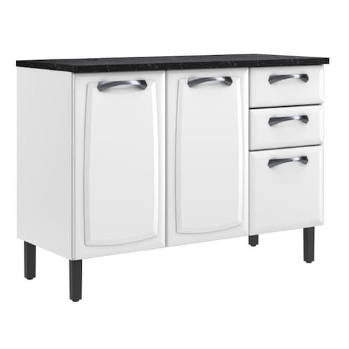Balcão de Cozinha Itatiaia 3 Portas 2 Gavetas Com Tampo New Premium Branco Neve