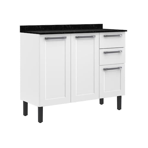 O Balcão de Cozinha 3 Portas e 2 Gavetas Branco da linha Florença é o módulo ideal para completar a sua cozinha. Ele possui também: