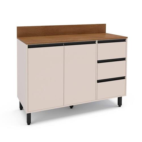 Balcão de Cozinha Koya com Tampo 2 Portas 3 Gavetas Creme - Bege
