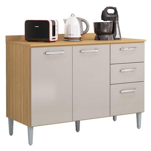 Apresentamos a você que procura por qualidade bom preço e um design moderno que irá lhe proporcionar praticidade na hora de organizar seus utensílios, o Balcão de Cozinha da linha Lavínia na cor Damasco Off White conta com amplo espaço interno, pés reguláveis para facilitar seu dia a dia. Confira mais sobre esse lindo balcão abaixo: