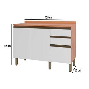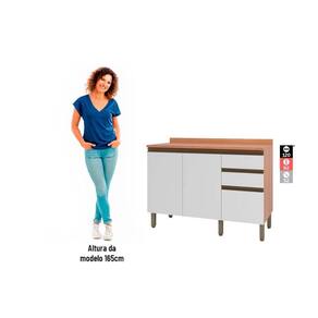 Balcão de Cozinha Macadâmia 120cm 2 Portas 3 Gavetas Freijo/Branco - Telasul