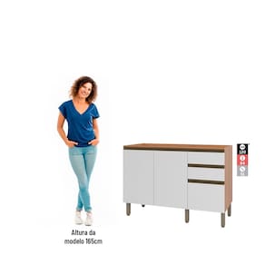 Balcão Gabinete Macadâmia 1200MM Para Pia 2 Portas Freijó e Branco