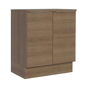 Possui duas portas e divisão interna com uma prateleira e dois nichos. Assim fica muito mais fácil de organizar panelas, utensílios, louças e produtos de limpeza.