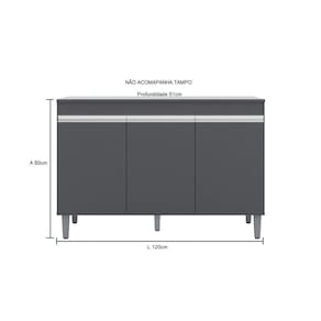 Balcão de Cozinha Manu 120cm S/ Tampo Cor Cinza - AJL Móveis