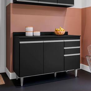 Especificações Balcão: - NÂO ACOMPANHA O TAMPO; - Material: MDP BP; - Revestimento: Melanima BP; - Pés: PVC; - Gavetas: 2; - Portas: 2; - Prateleira: 1; - Peso Suportado: Até 35kg Distribuídos; - Peso: 31kg; - Necessita Montagem: Sim - Garantia: 3 meses contra defeitos de fabricação.