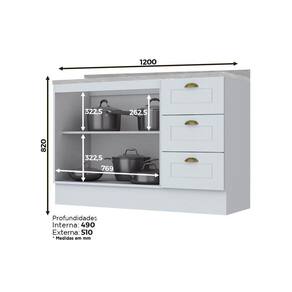 Balcão de Cozinha Americana 2 Portas e 3 Gavetas p/ Pia 120cm S/tampo Branco - Henn