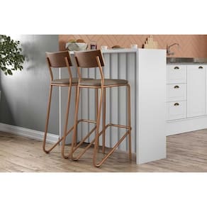 Balcão de Cozinha Modulado Bella 2613 120cm e 2 Banquetas 1747 Branco - Rose/Areia/Caramelo - Carraro - Blush