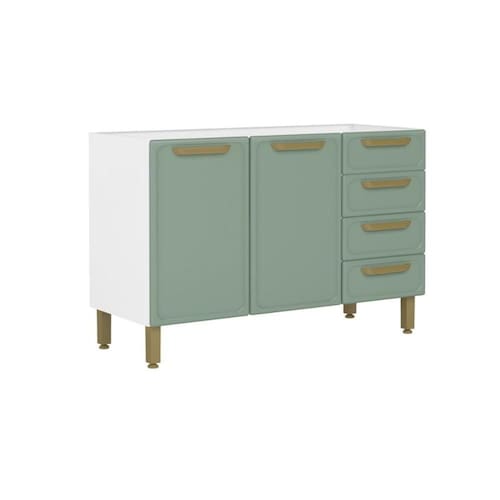 Balcão de Cozinha Bella c/ 2 Portas e 4 Gavetas s/ Tampo 120cm Verde - Bertolini