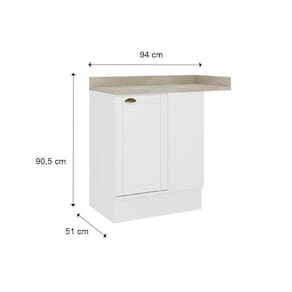 Balcão De Cozinha Modulado C/ Tampo Bella 2611 Canto Reto C/ 1 Porta 94cm Branco - Carraro