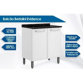 Balcão de Cozinha Evidence 7120 2 Portas c/ Tampo 80cm Branco - Bertolini
