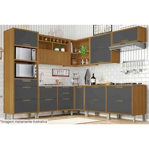 Balcão de Cozinha Imperatriz 1 Porta e 1 Gaveta c/ Tampo 80cm Freijo/Grafite - Nesher
