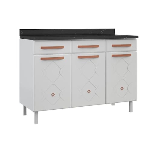 Balcão de Cozinha Mirage New Aço 3 Portas e 3 Gavetas c/Tampo 120cm Branco - Telasul