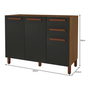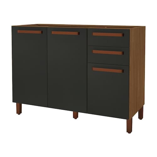 Balcão De Cozinha Monza 120cm 3 Portas E 2 Gavetas Freijó/chumbo Sem Tampo - Indékes Freijó/chumbo Balcão de Cozinha Monza 120cm 3 Portas e 2 Gavetas sem Tampo - Indékes Funcionalidade e espaço bem distribuído definem o Balcão Monza 120cm sem tampo. Fabricado em MDP com pintura UV, possui 3 portas com prateleira interna e 2 gavetas com corrediças telescópicas, ideais para armazenar utensílios e mantimentos com praticidade. Os puxadores alça em ABS oferecem um toque moderno ao móvel, enquanto os pés em plástico com regulagem de altura garantem estabilidade em diferentes tipos de piso. Modelo versátil que não acompanha tampo, permitindo personalização conforme sua cozinha. ESPECIFICAÇÕES: - Estrutura em MDP - Pintura UV - 3 Portas - Dobradiças metálicas - 2 Gavetas - Corrediças telescópicas - Interna com prateleira - Puxadores alça em ABS - Pés em plástico com regulagem de altura - Amplo espaço interno - Não acompanha tampo