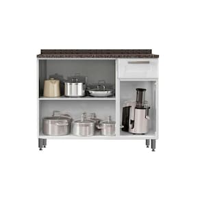 Balcão de Cozinha Múltipla 6112 3 Portas 1 Gaveta c/ Tampo 105cm Branco/Preto - Bertolini