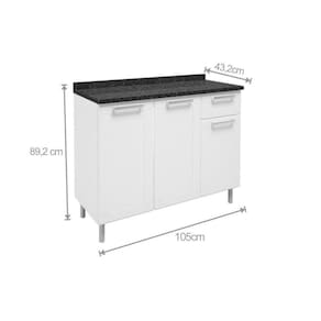 Balcão de Cozinha Múltipla 6114 3 Portas 2 Gavetas c/Tampo 105cm Branco/Preto - Bertolini
