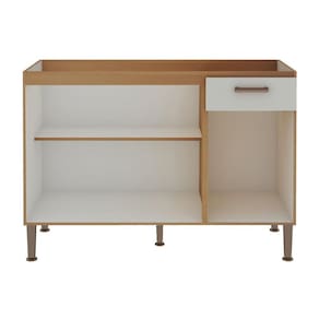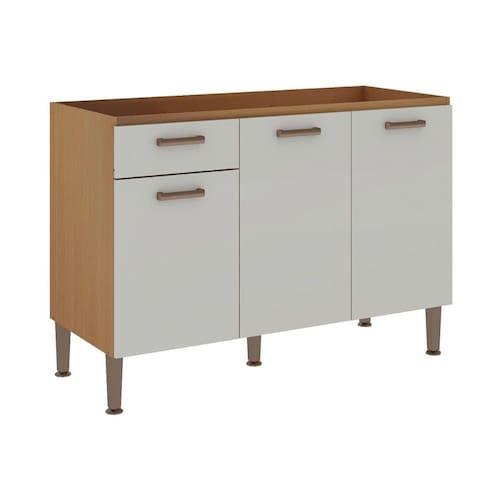 BALCÃO DE COZINHA P/ PIA ESSÊNCIA C/ 3 PORTAS E 1 GAVETA S/ TAMPO 120CM FREIJO/WHITE LACA - GENIALFLEX Marca: Genialflex Linha/Modelo: Cozinha Essência