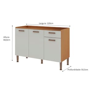 Dimensões(Cm): Balcão de Cozinha p/ Pia Essência c/ 3 Portas e 1 Gaveta s/ Tampo 120cm Comprimento(Profundidade): 50,5 cm Largura: 120 cm Altura: 84,8 cm