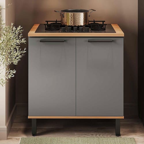 O(a) Balcão de Cozinha para Cooktop 5 Bocas Castanha 2 Portas 1 Prateleira Cinza/Freijó - Telasul é produzido em MDP na escala de brilho Semi-Brilho, e possui um grau de dificuldade de montagem: Médio.