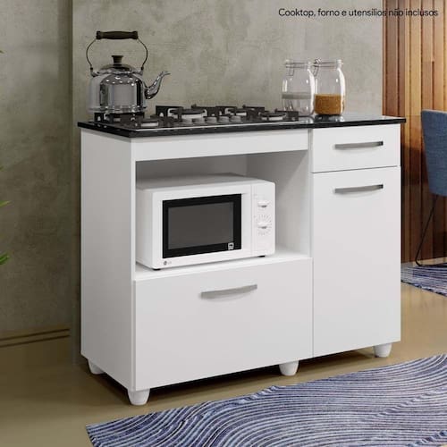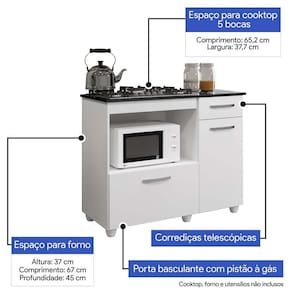 Balcão de Cozinha para Cooktop 5 Bocas 2 Portas 1 Gaveta Violeta Branco Medida do Recorte para Cooktop: 65,2cm x 37,7cm Otimize o espaço da sua cozinha utilizando o Balcão para Cooktop Violeta, pois ele conta com muito espaço para organizar os seus utensílios mais utilizados durante o dia. Dê um toque especial em sua cozinha com esse versátil e charmoso Balcão.