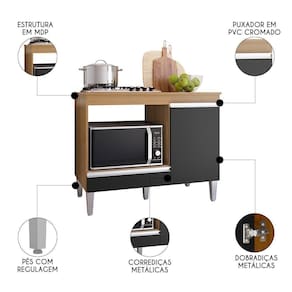O Balcão de Cozinha Para Cooktop e Forno Microondas Carla Amêndoa/Preto, vai trazer charme e modernidade pra sua Cozinha, pois é um móvel prático e funcional!